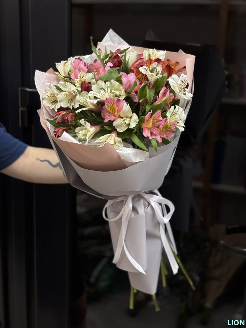 Яркая палитра девяти альстромерий в лаконичной упаковке — выбор для тех, кто ценит современный стиль. Динамичное сочетание оттенков создает смелую и запоминающуюся композицию, полную энергии и жизни. Этот букет говорит о вашем креативном подходе и умении дарить не просто цветы, а настоящее настроение. Смелый акцент в любом интерьере.