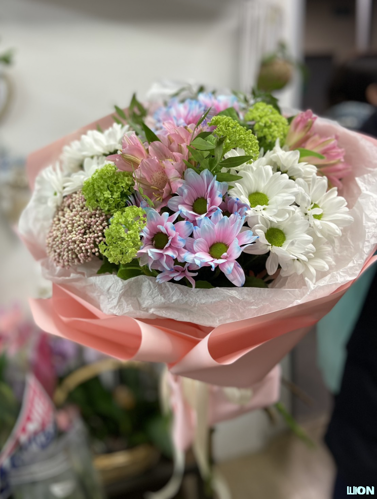Букет «Весенние лучики» — нежное сочетание двух веток крашеной и двух веток белой кустовой хризантемы, создающих атмосферу свежести и радости. Этот букет, словно солнечные лучи весны, дарит тепло, легкость и вдохновение. Идеальный выбор, чтобы подчеркнуть светлый и радостный момент.