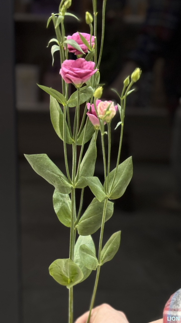 Глубокая и страстная малиновая эустома. Её бархатистые лепестки, собранные в изящные бутоны, напоминают роскошные ткани. Этот цветок — символ очарования и творческого начала, способный стать ярким акцентом в любом букете, даря ему настроение торжества и роскоши.