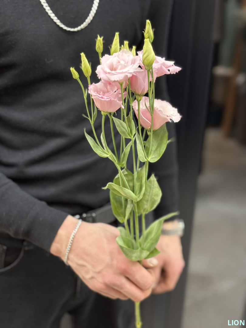 Нежно-розовая эустома — это олицетворение изящной женственности и хрупкой грации. Её махровые лепестки, похожие на шелк, образуют пышный и невероятно нежный бутон. Идеальна для создания романтичных образов и композиций, полных тепла и нежности.
