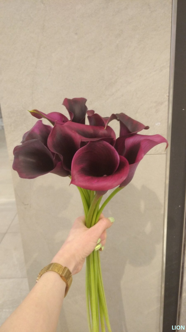 Новый сорт калл Рудольф. Высота цветка около 40 см, а диаметр бутона 7-10 см.