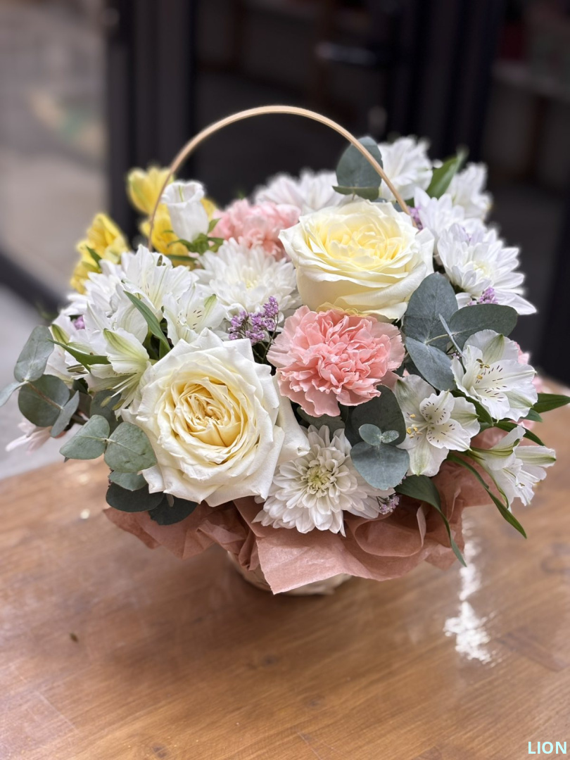 Розы / Альстромерии / Гвоздики / Хризантемы куст. / Колокольчик / Эвкалипт