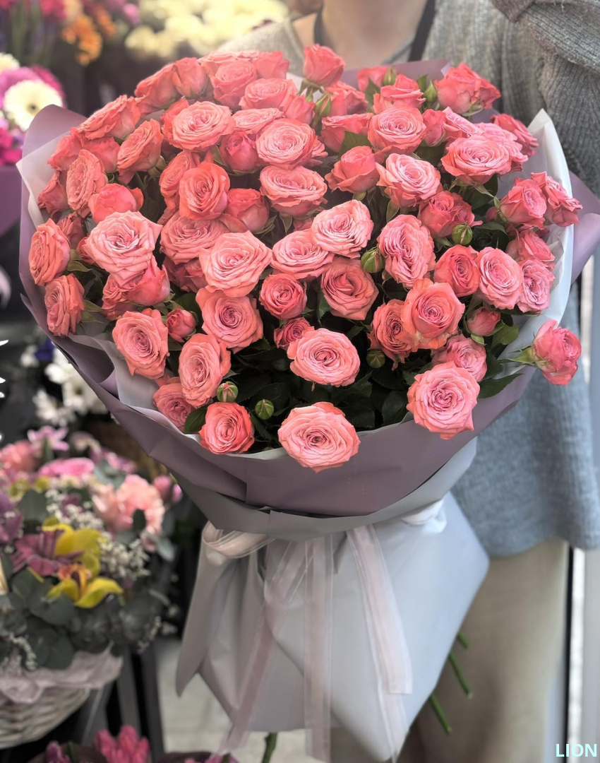 Нежный и изысканный букет, созданный из пышных кустовых роз. Его мягкие оттенки передают тепло, женственность и трепет чувств. Утончённое оформление подчеркивает природную красоту цветов, делая композицию по-настоящему очаровательной.