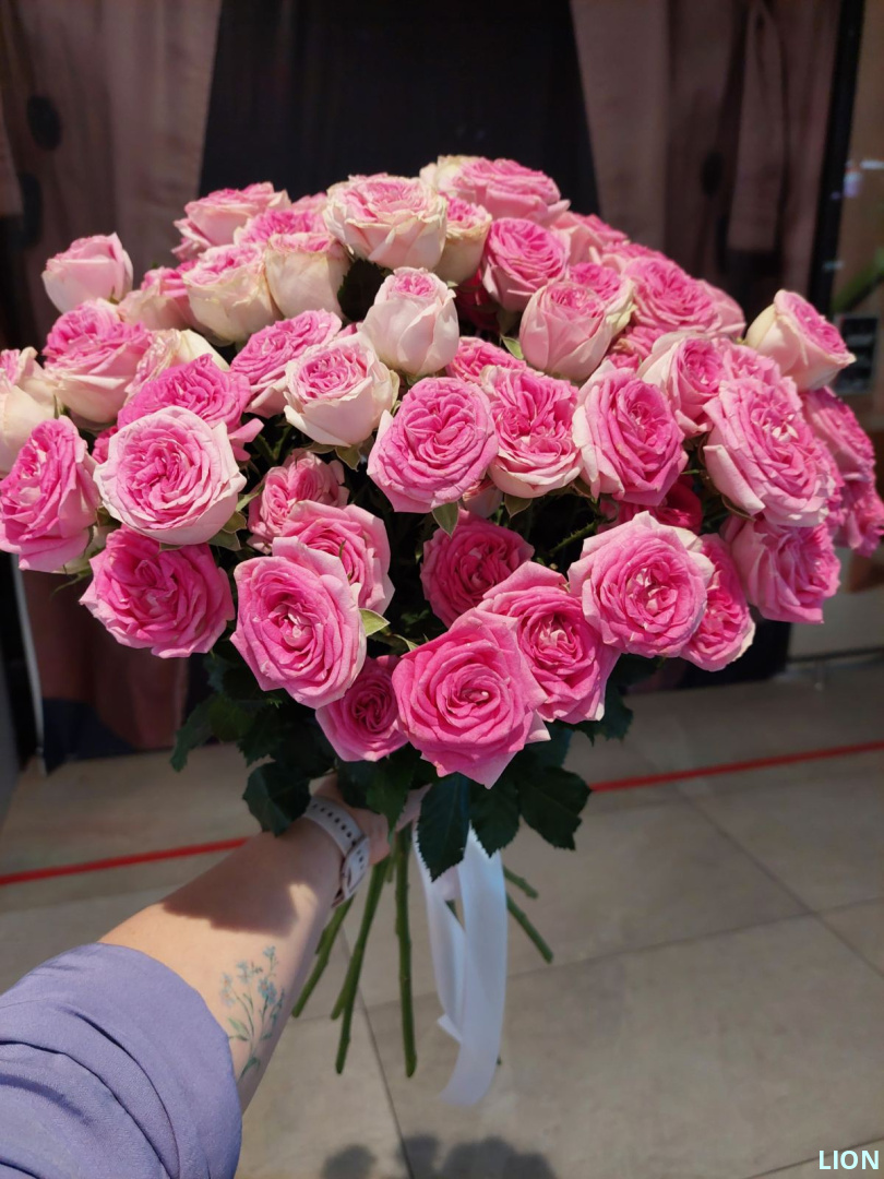 Пятнадцать пышных пионовидных кустовых роз с их многослойными лепестками создают образ воздушного облака, полного очарования. Перевязанные изящной лентой, они источают тонкий, сладковатый аромат. Композиция говорит на языке изысканных чувств, даря ощущение сказки и неповторимого момента, который останется в памяти надолго.